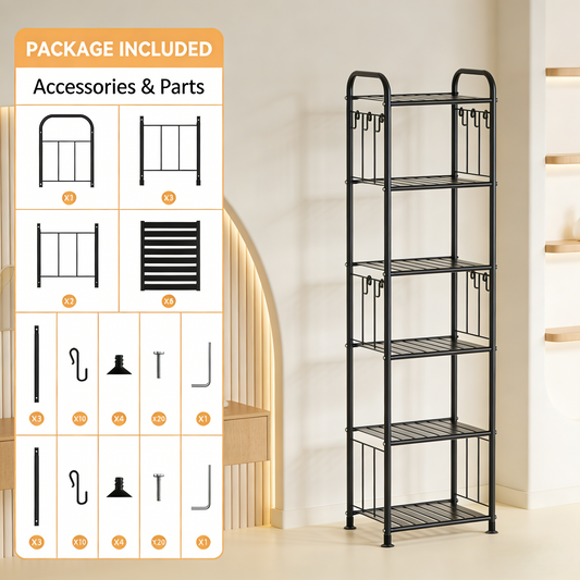 5-Tier Multi-Purpose Storage Shelf with Hooks