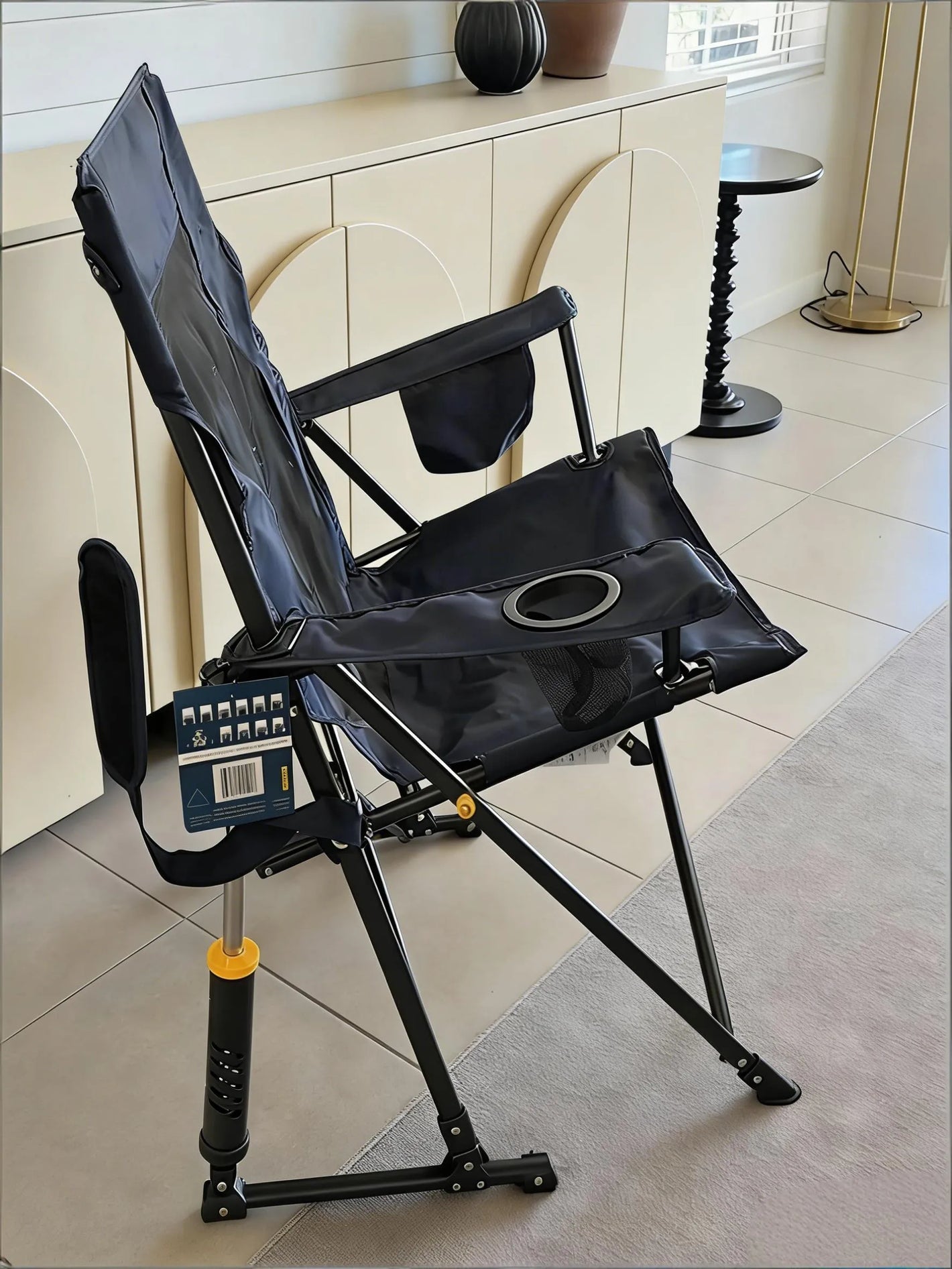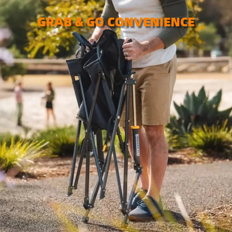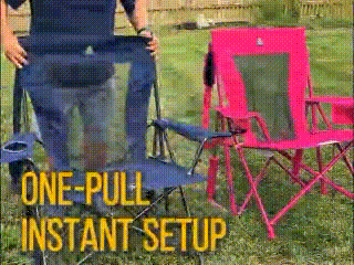 Ready in seconds—just push the backrest and armrests to sit back and relax. Folds down just as fast, with a built-in carry strap for effortless grab-and-go.
