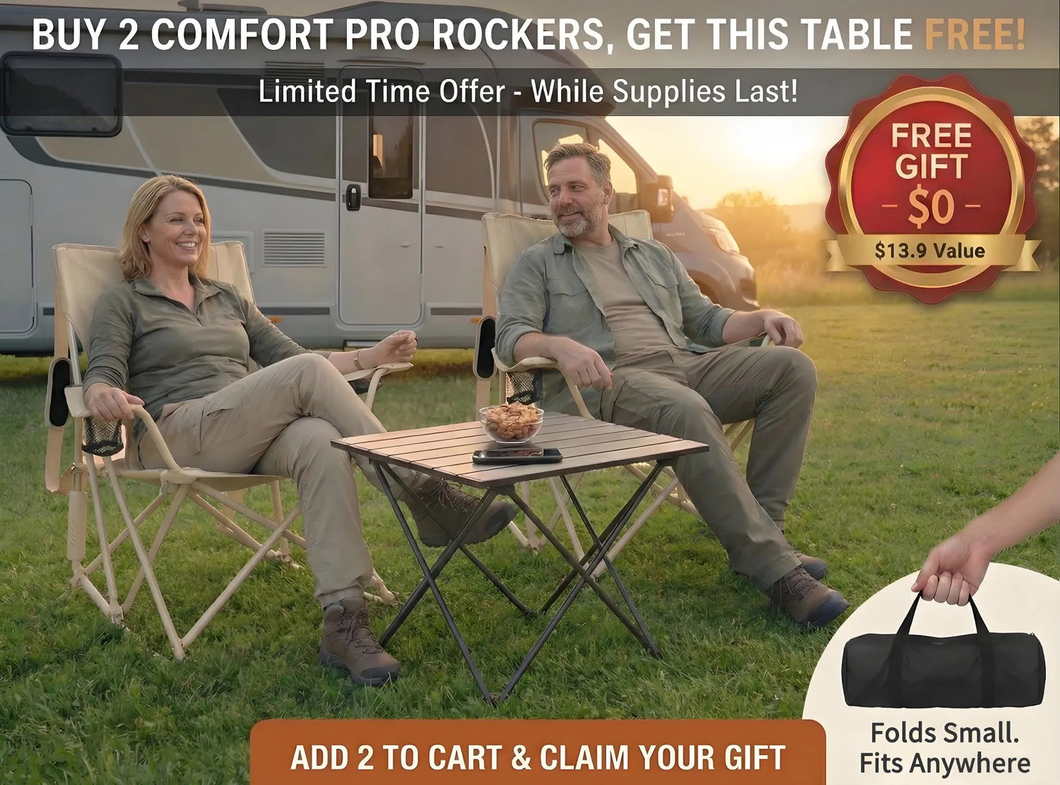 Get the complete outdoor setup for less. Purchase 2 Comfort Pro Rockers today and receive a FREE Foldable Side Table—no strings attached, while supplies last.